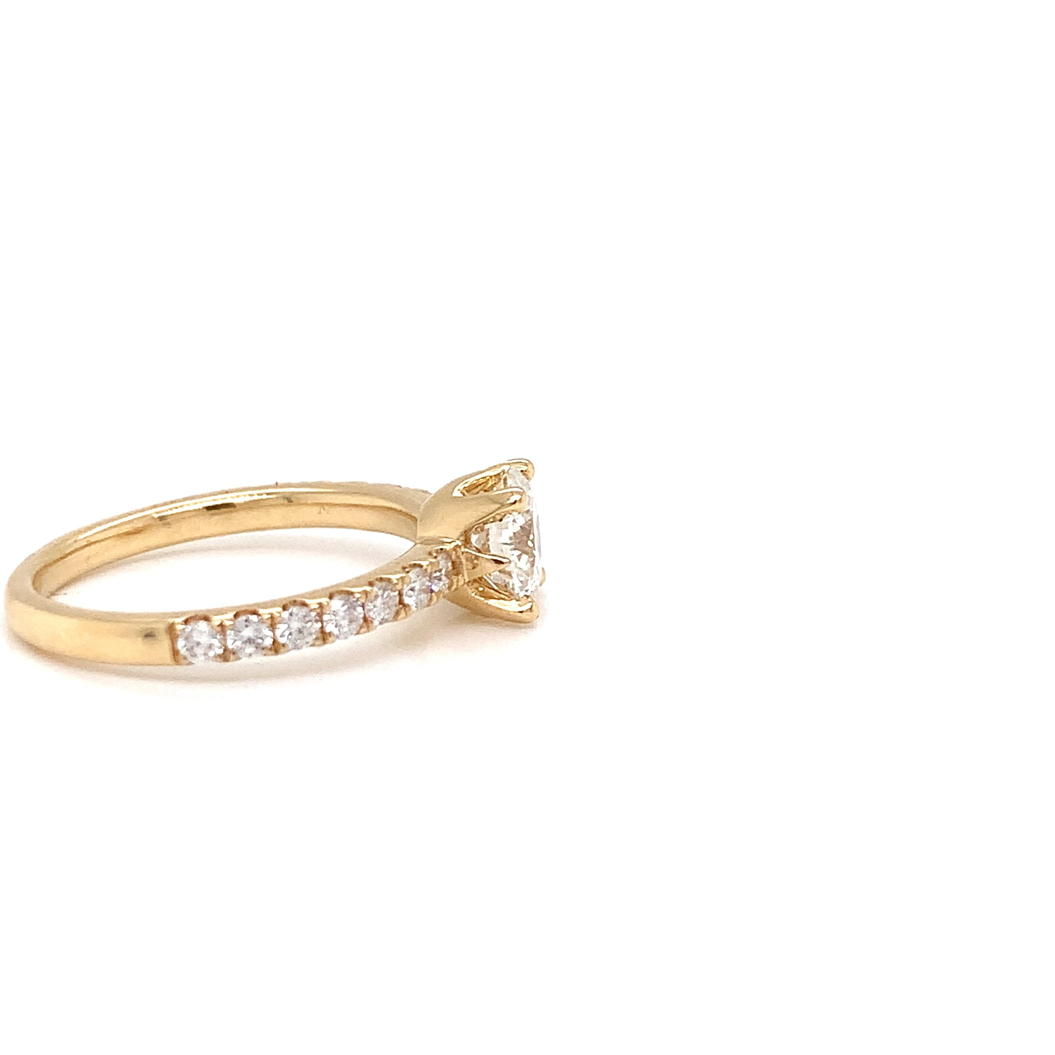 The 'Elita' ring presents a breathtaking 1-carat GIA certified round diamond, set within an ornate 18-karat yellow gold basket. Every detail speaks to refined taste, intricate metalwork frames the diamond with architectural precision, allowing light to dance through the stone while the warm gold enhances its radiance.