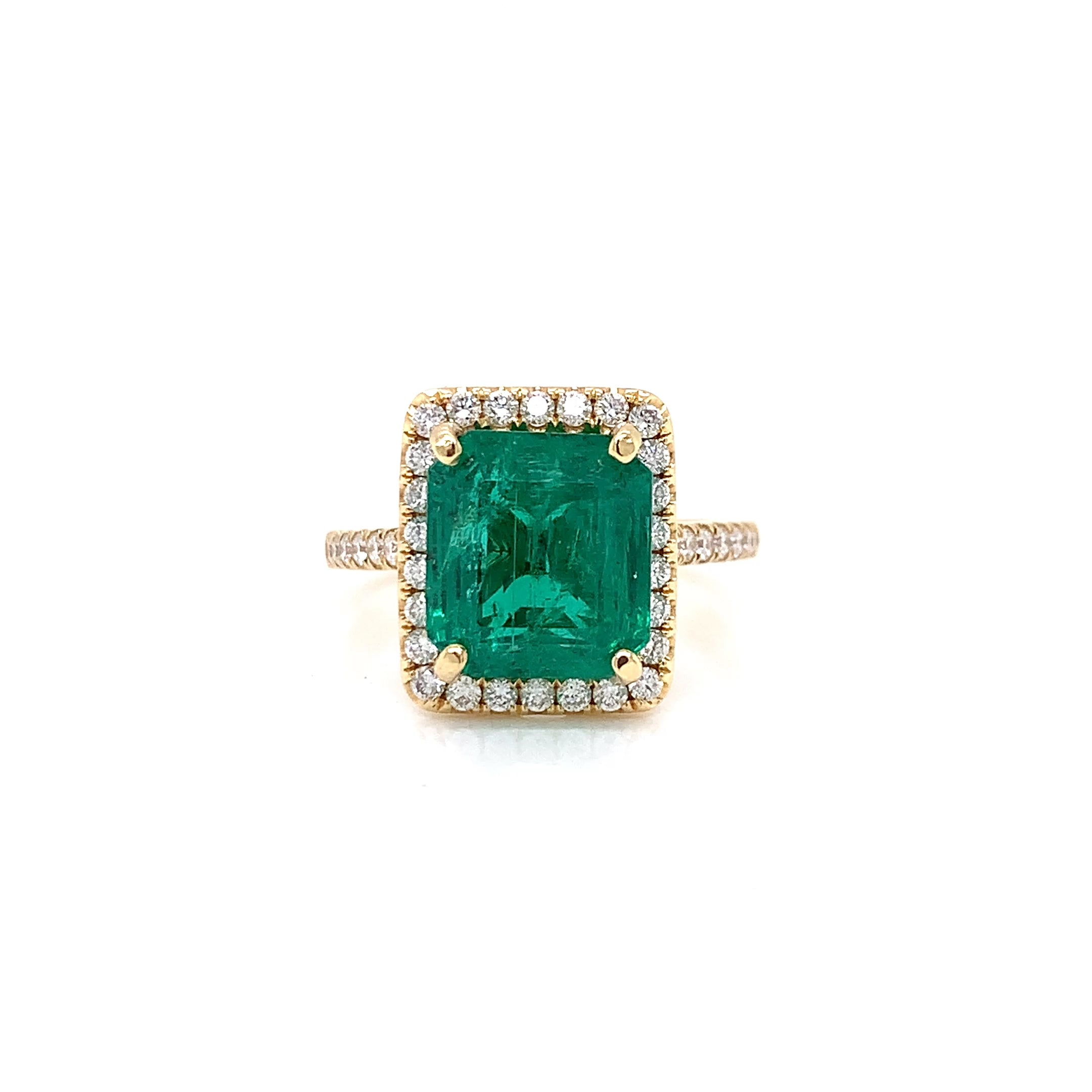 The Emerald Emperor stands as an exquisite testament to uncompromising luxury. Crafted in 18KT yellow gold, this prestigious piece showcases a breathtaking 4.02-carat Emerald of exceptional quality. Encircled by 42 round brilliant diamonds totalling 0.51 carats, each stone amplifies the emerald's inherent majesty with crystalline radiance. Designed for the discerning collector who demands nothing less than perfection, this is an heirloom-worthy investment that transcends fleeting trends.
