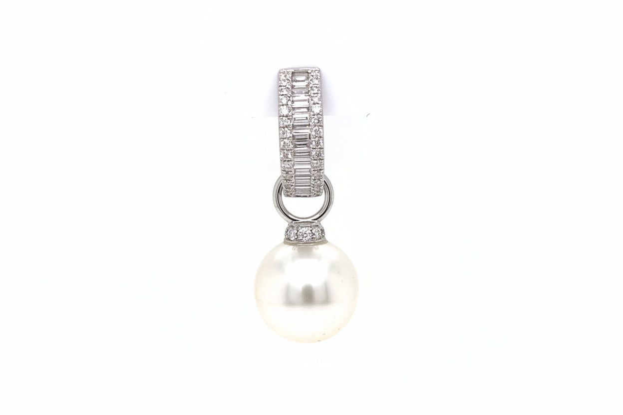 Elevate your huggies or hoops with these exquisite pearl charm drops. Crafted in 18kt white gold and weighing 1.13g, each piece features a lustrous pearl complemented by 16 round diamonds totalling 0.20cts. The refined combination of pearl and diamond creates a sophisticated sparkle that transforms any earring into a statement piece.
